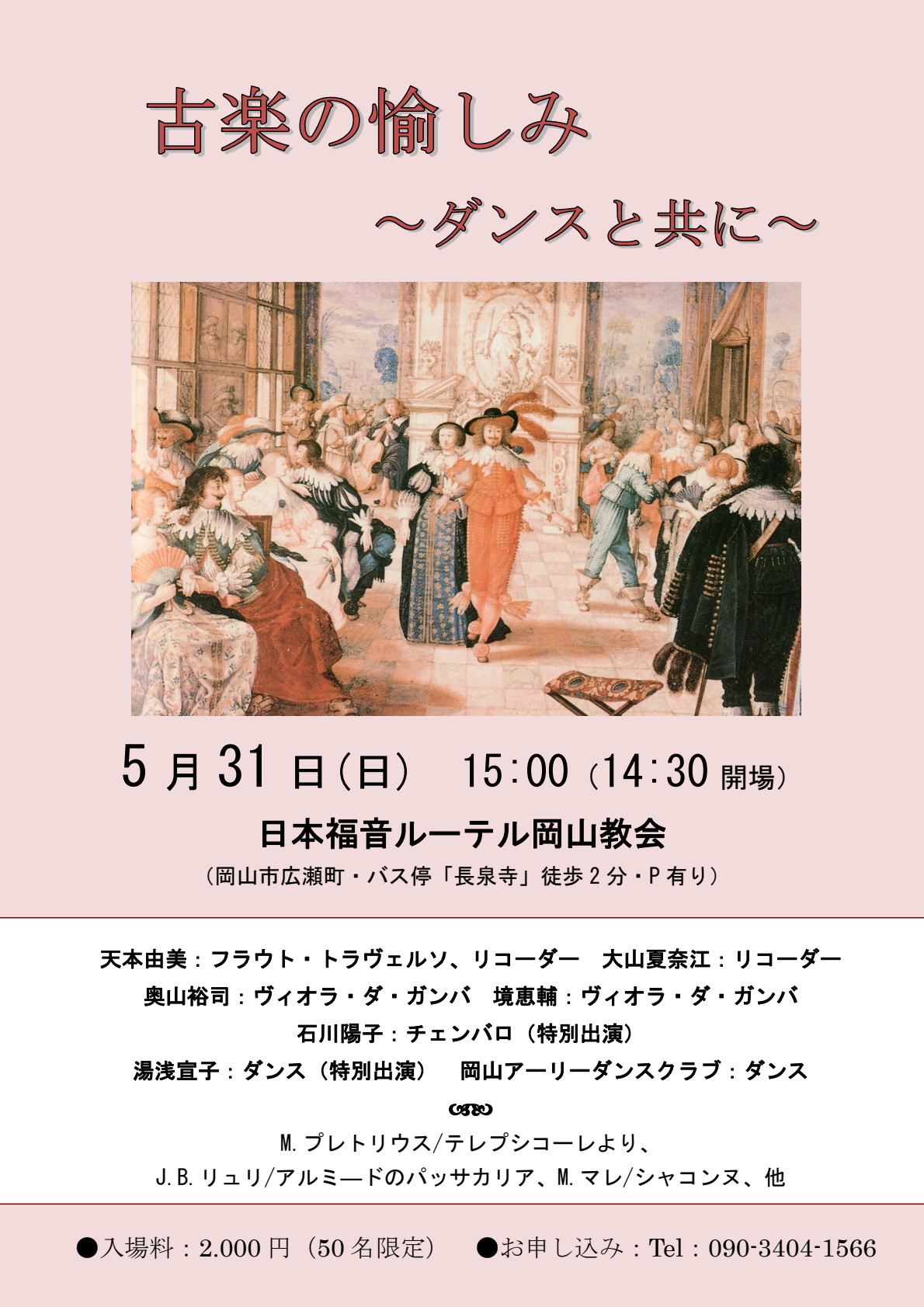 2026.5.31(日)15:00「古楽の愉しみ 〜ダンスと共に〜」 日本福音ルーテル岡山教会 |